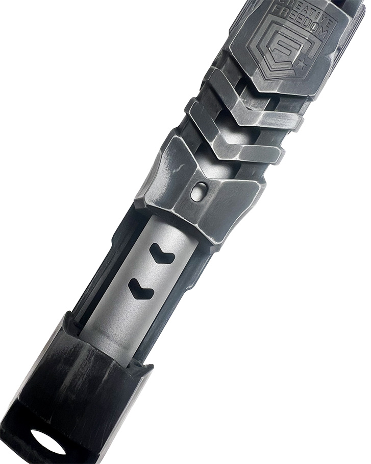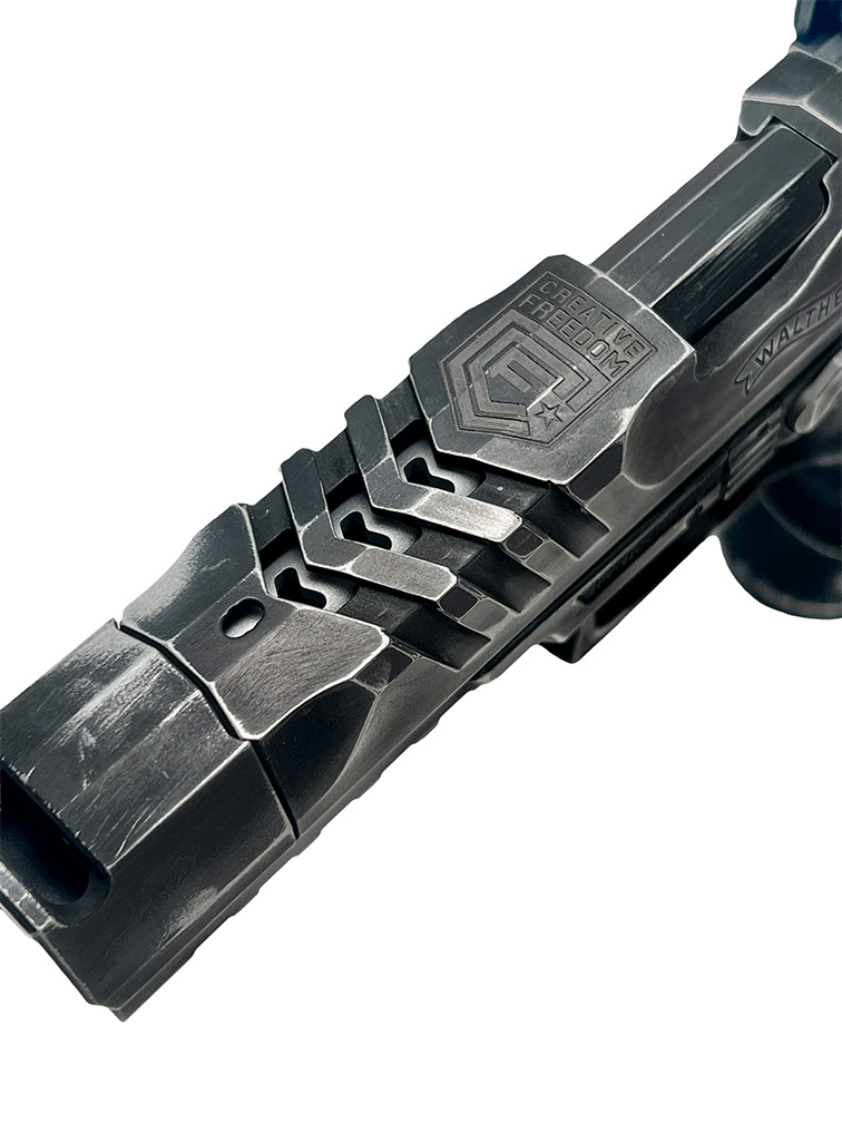 This exclusive collaboration between Creative Freedom and Tierney Arms Company combines precision engineering with artistic design. Featuring a custom slide cut, barrel port, and Cerakote finish, this build is the perfect fusion of aesthetics and functionality.